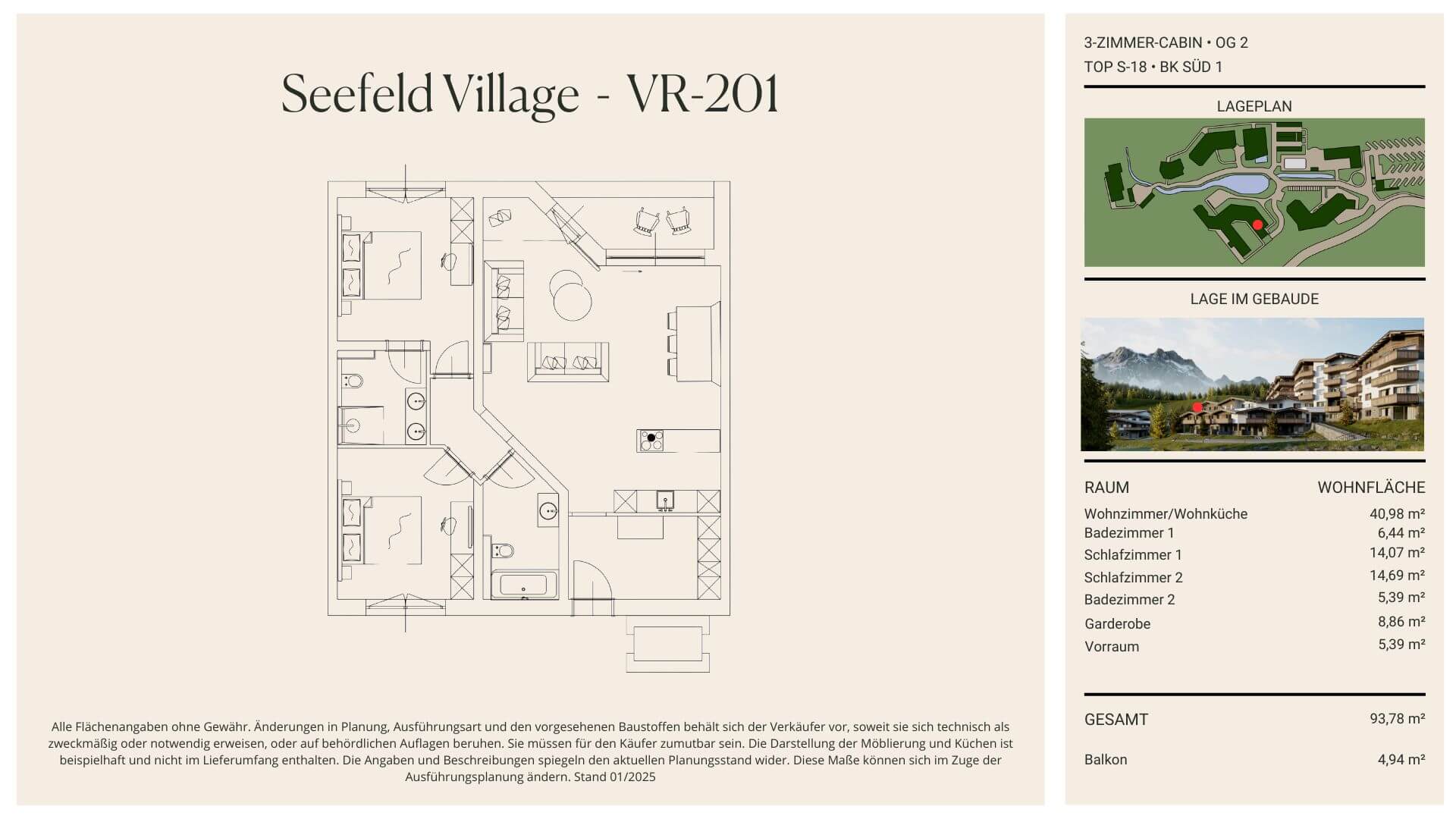 De residences liggen direct aan het bergwater, dat centraal door het resort stroomt. Uw auto parkeert u onder uw eigen carport, direct voor het gebouw. Alle residences hebben een balkon of terras met een fenomenaal uitzicht.
